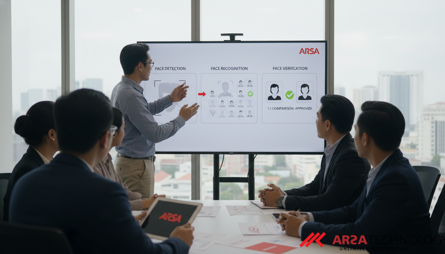 ARSA’s Face Recognition & Liveness overview highlights its powerful 1:N face recognition against database capabilities, allowing enterprises to manage face collections and perform real-time identification with high accuracy. This is a key difference between face detection and recognition; detection finds faces, recognition identifies them.